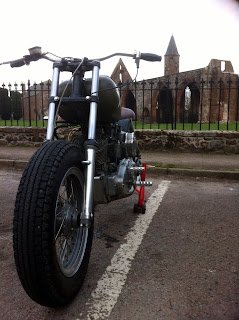 All my paperwork in hand, insurance, fresh MOT cert, dating letter from the Indian club, V(whatever) form all filled out and signed and dated, I loaded the Scout back into the trailer and headed round to the LVLO in Inverness. First one there ready for opening at 9am I took my ticket and got called before the stoney faced government official. i presented my paperwork and told her that the bike was outside in the trailer ready for inspection. Her response floored me...... due to changes in policy and budget constraints, the Inverness office no longer has the facility to carry out registration inspections!!!
